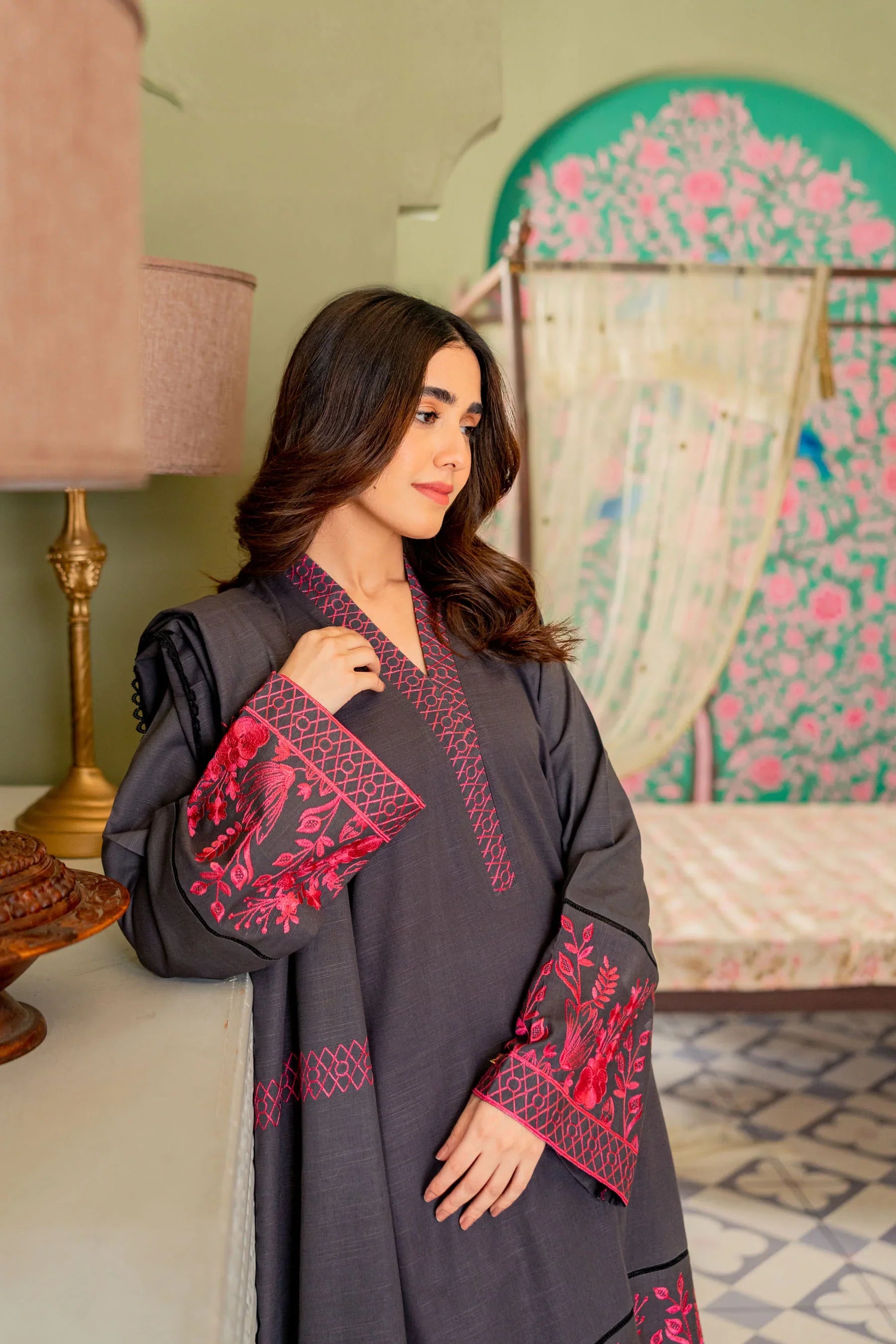 Embroidered Dhanak 3 Piece fcc-843 Black