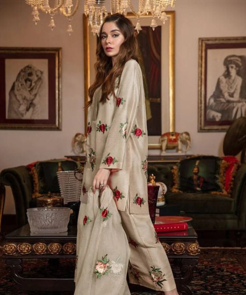 - Embroidered Shamoz Silk Airjet Trouser